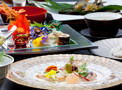 調理長お任せの懐石を楽しむ。