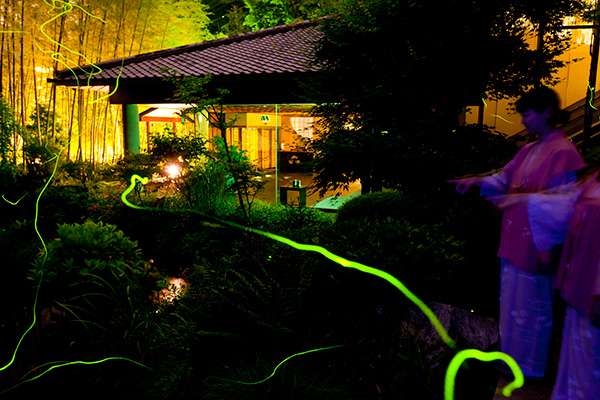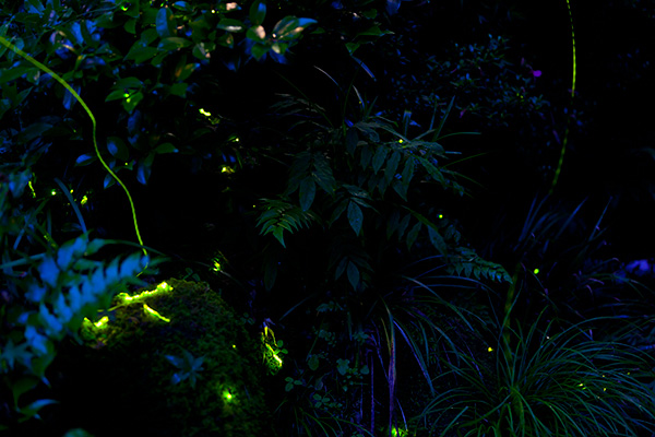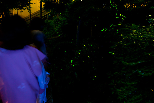 ふわりふわりと幽玄の光が飛び交う庭園で夜のお散歩。